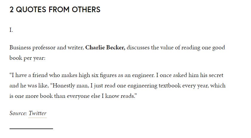 Then a couple of weeks later, James Clear, author of Atomic Habits (2023’s #1 selling book on Amazon), included the tweet as a quote in his 3-2-1 Newsletter that goes out to over 2 million people. You can find the full newsletter on his website here, and this is what it looked like: