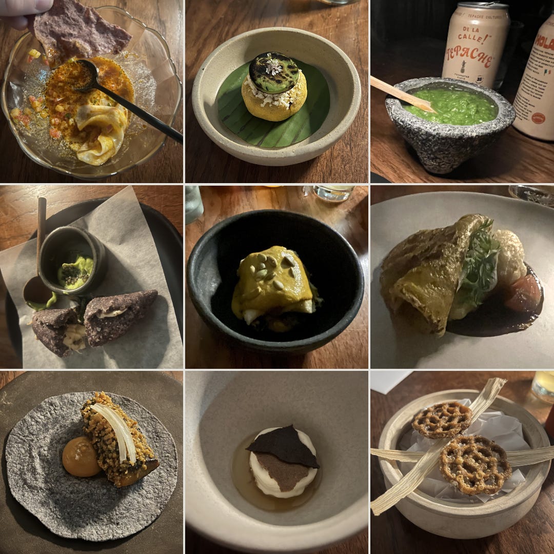 Man, this sounds like a meal I'd travel for. I love so many of these ingredients, having grown up on Mexican food in L.A., but I've never had a Mexican tasting menu like that. Loved vicariously experiencing the spacetime maiz vortex through this wonderful piece.
