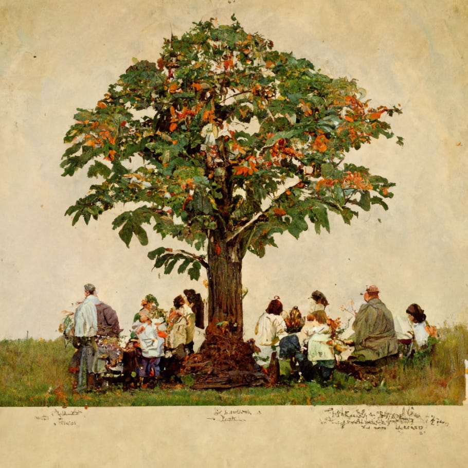 american chestnut tree, family, norman rockwell